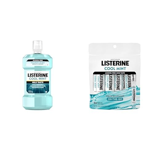 Bundle of Listerine Alcohol-Free Mouthwash, Cool Mint Flavor, 1 L + Listerine Cool Mint Alcohol Free Mouthwash Packets Mini Travel Size, 0.33 fl oz, 30 Pack