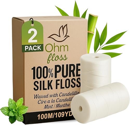 Ohm Earth’s Ohm Floss Refill – Natural Silk Dental Floss for Refillable Bamboo/Steel Holder, Candelilla Wax, 100% Pure Silk, Eco Oral Care, 110 yds/100m (2-Pack) Natural Mint