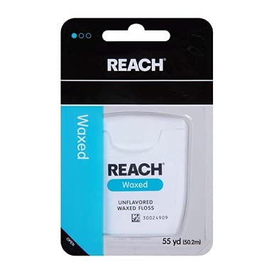 55 yards of Reach Unflavored Waxed Dental Floss to remove food particles and plaque from teeth and mouth